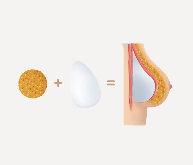 Hybrid breast augmentation refers to the use of both implants and fat transfer in the same operation to enhance the breast shape. There are some situations when breast implants alone cannot effectively achieve the ideal contour. Fat grafting is used as an adjunct to correct imperfections.